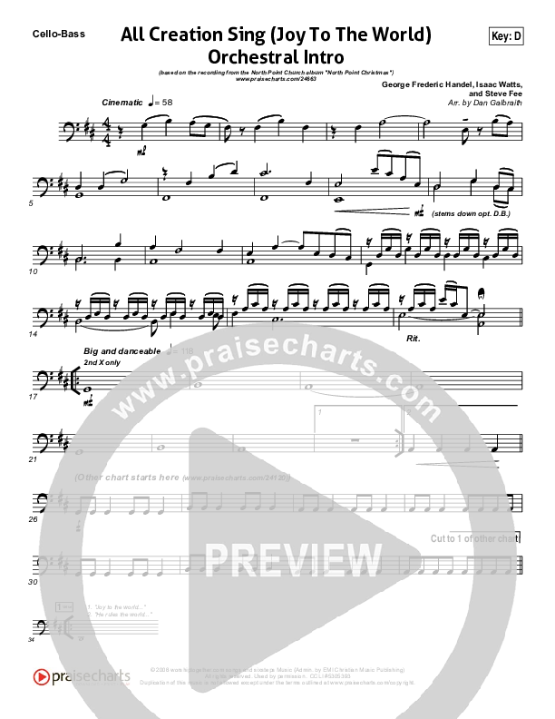 Download the Orchestration for All Creation Sing (Joy To The World) (Instrumental Intro) by North Point Worship, from the album North Point Christmas. This song was arranged by Daniel Galbraith in the key of C, D.