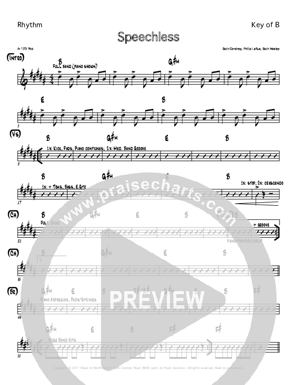 Download the Rhythm Chart for Speechless by Seth Condrey, from the album Keeps On Changing.