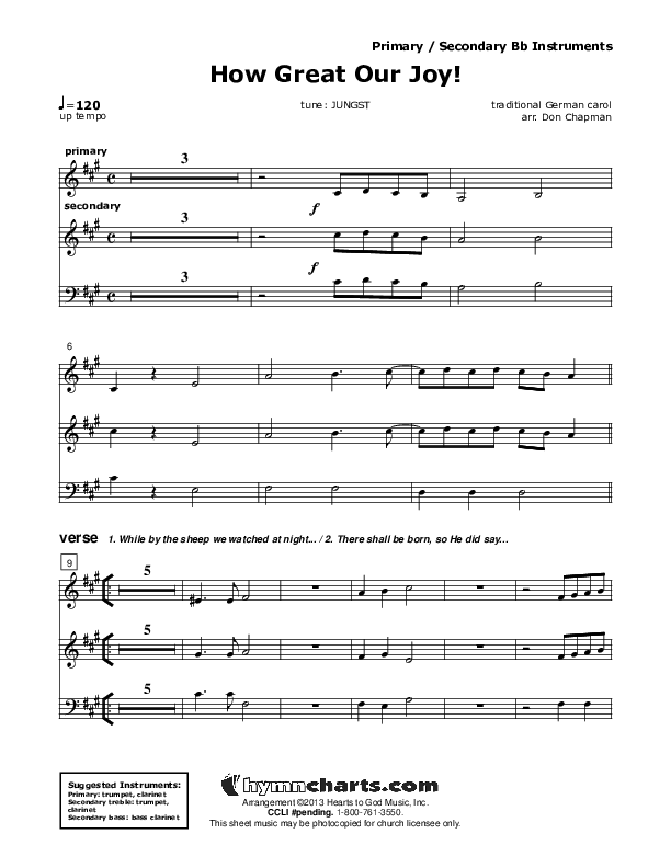 Download the Orchestration for How Great Our Joy by Don Chapman, from the album Christmas Eve Service Guide - Joy. This song was arranged by Don Chapman in the key of G.