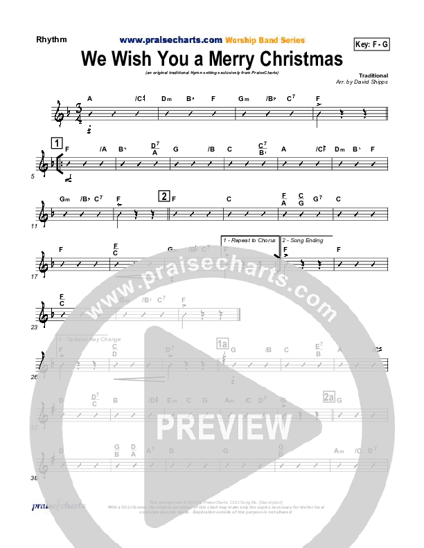 Download the Rhythm Chart for We Wish You A Merry Christmas by Traditional Carol / PraiseCharts, from the album Traditional Carols Collection. This song was arranged by David Shipps in the key of Eb, F.