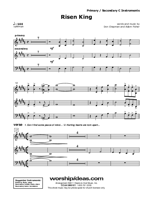 Download the Orchestration for Risen King by Don Chapman, from the album Risen King. This song was arranged by Don Chapman in the key of B.