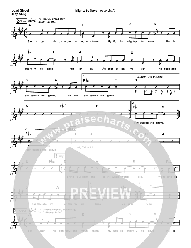Download the sheet music for Mighty To Save by Hillsong Worship, from the album Mighty To Save. This song was arranged by Daniel Galbraith in the key of A, G.