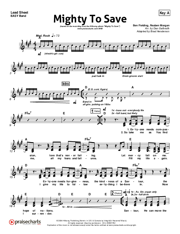 Download the Orchestration for Mighty To Save by Hillsong Worship, from the album Mighty To Save. This song was arranged by Daniel Galbraith in the key of A, G.