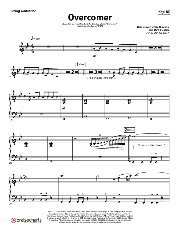 Download the Orchestration for Overcomer by Mandisa, from the album Overcomer. This song was arranged by Daniel Galbraith in the key of A, Bb.