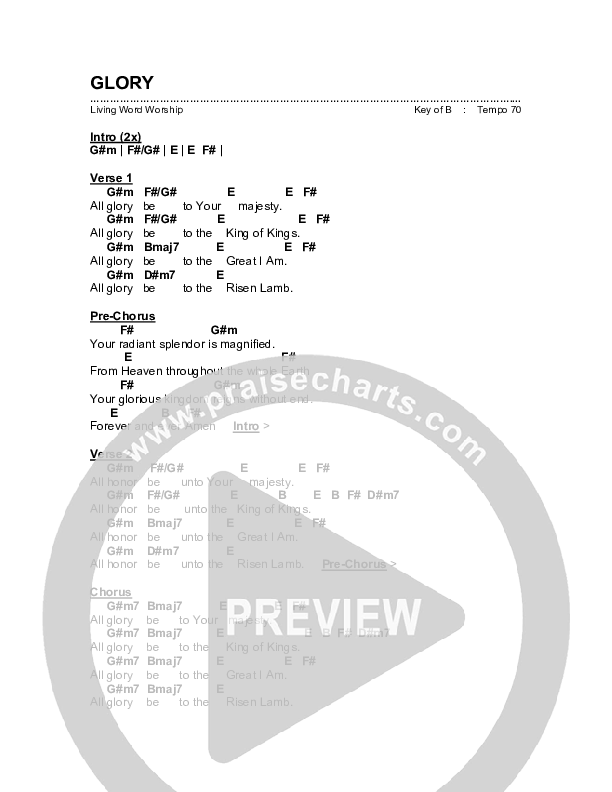 Download the PDF Chord Charts for Glory by Living Word Worship, from the album Be Lifted Up.