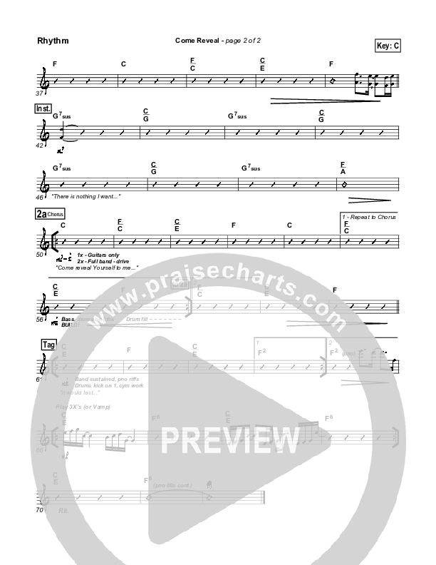 Download the Rhythm Chart for Come Reveal by Bethany Music / Jonathan Stockstill, from the album Bethany Live: Let The Church Rise. This song was arranged by Daniel Galbraith in the key of C, D.