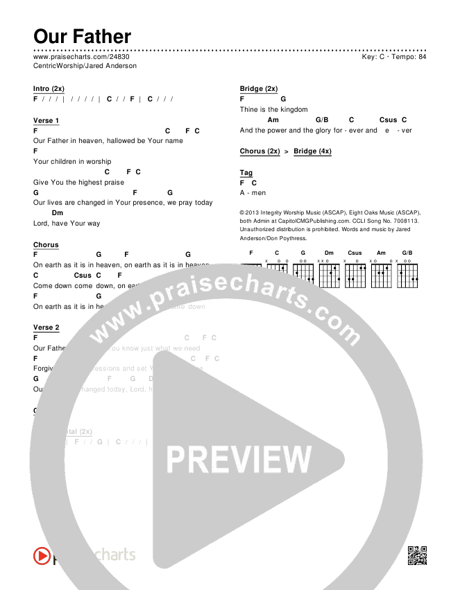 Our Father Chords PDF (Centricity Worship / Jared Anderson)