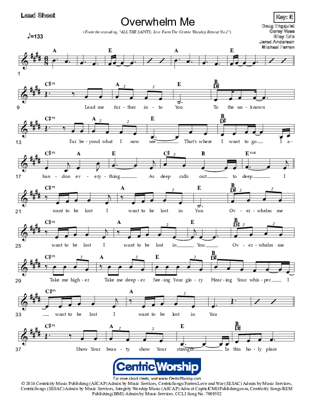 Download the sheet music for Overwhelm Me (Lost In You) by Centricity Worship / Riley Erin, from the album All The Saints: Live from the CentricWorship Retreat No. 1.