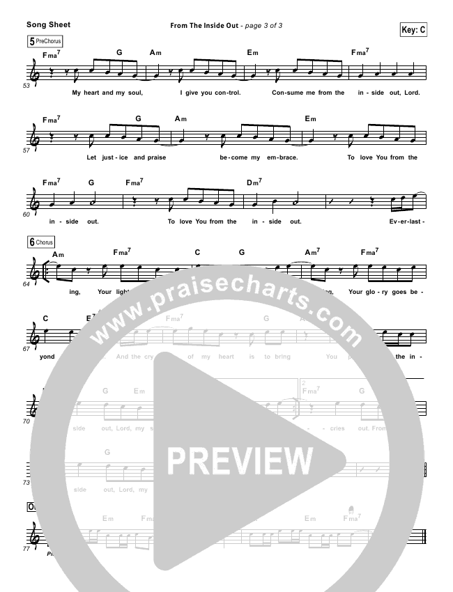 Download the sheet music for From The Inside Out by for KING & COUNTRY, from the album WOW Worship Lime. This song was arranged by Dave Iula in the key of Bb, C.