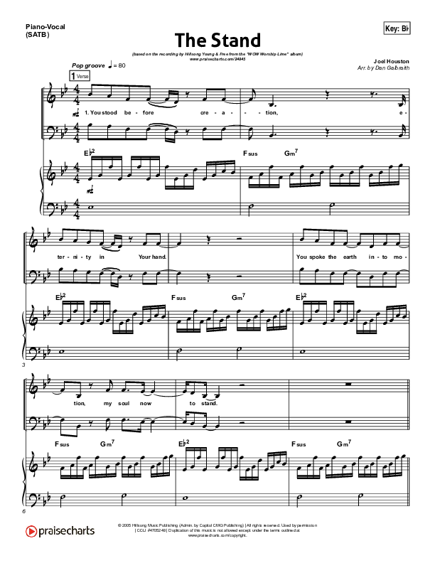Download the sheet music for The Stand by Hillsong Young & Free, from the album WOW Worship Lime. This song was arranged by Daniel Galbraith / Grant Wall in the key of A, Bb.