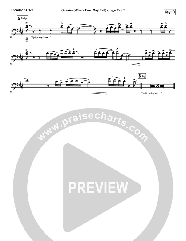 Oceans (Where Feet May Fail) (Radio) Trombone Sheet Music PDF (Hillsong UNITED / TAYA)