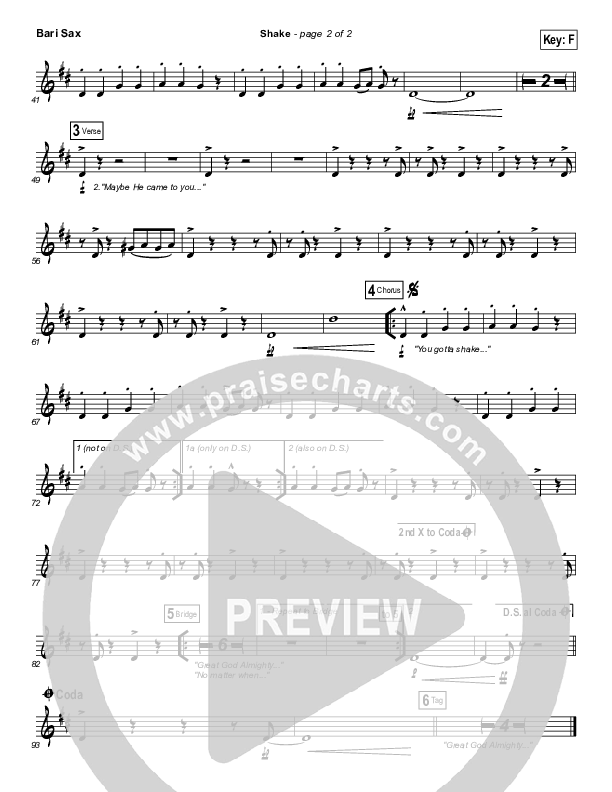 Shake Bari Sax Sheet Music PDF (MercyMe)