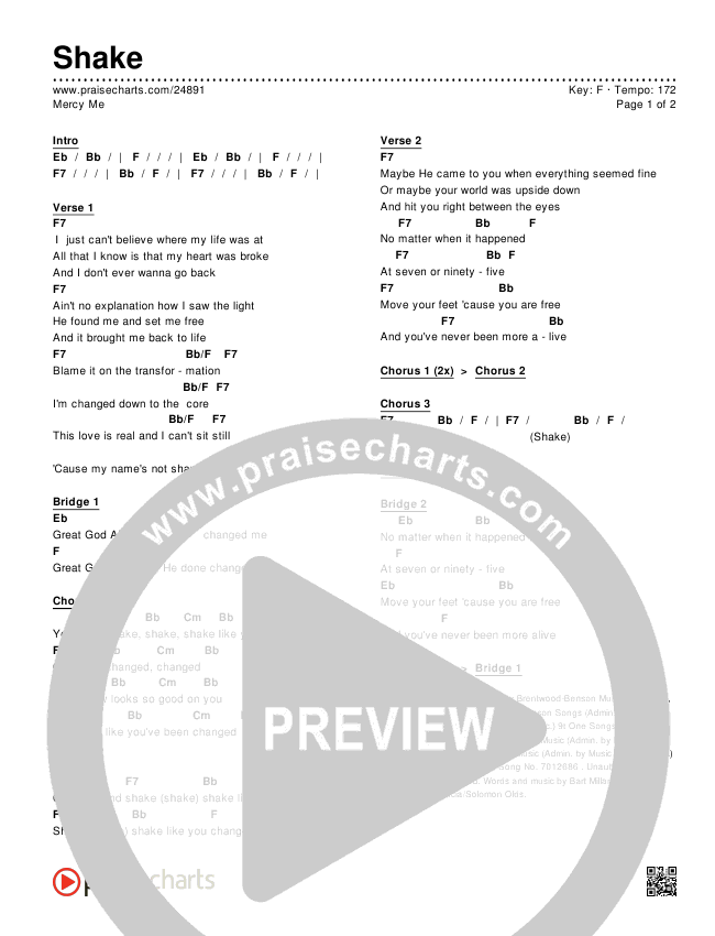 Shake Chords PDF (MercyMe)