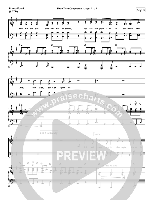 Download the sheet music for More Than Conquerors by Rend Collective, from the album The Art Of Celebration. This song was arranged by Daniel Galbraith in the key of F, G.