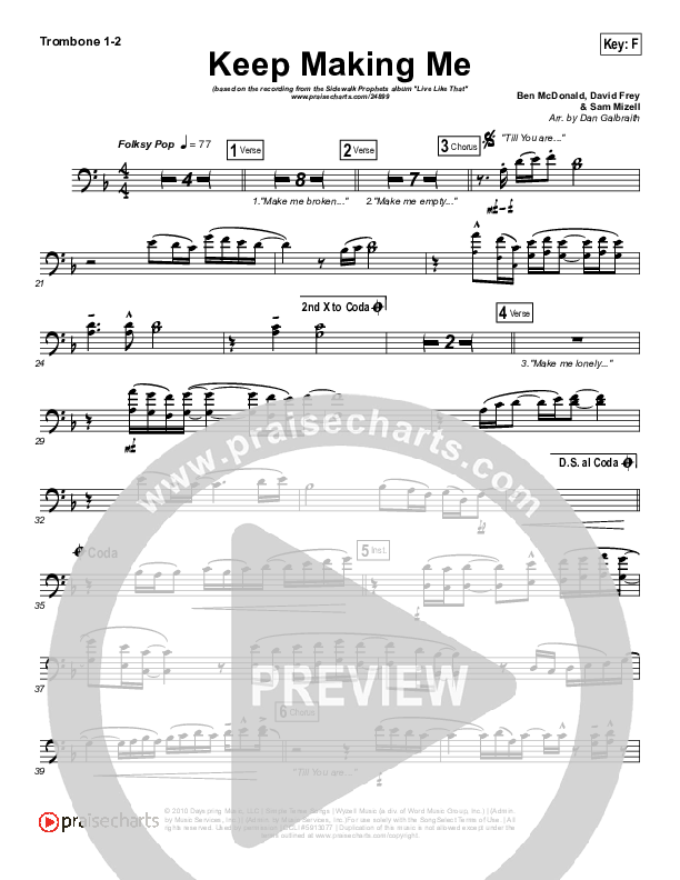 Keep Making Me Trombone Sheet Music PDF (Sidewalk Prophets)