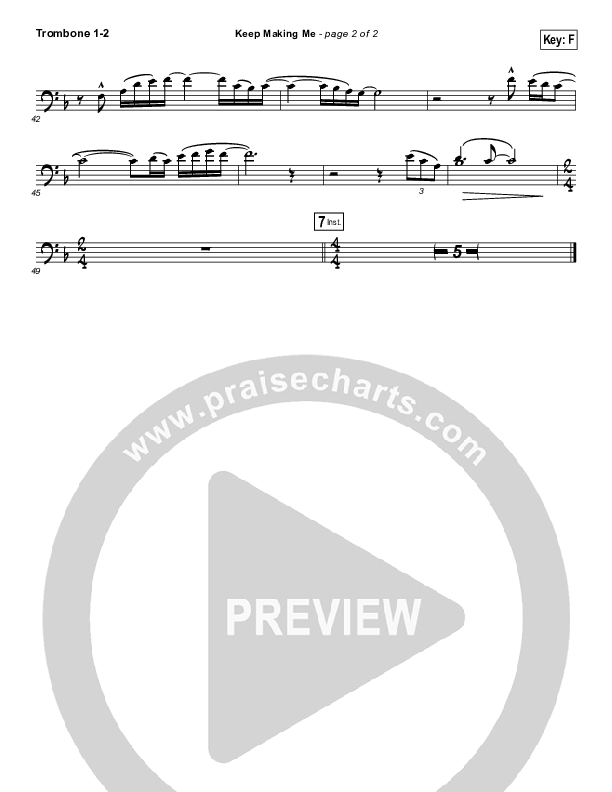 Download the Trombone 1,2 sheet music for Keep Making Me by Sidewalk Prophets, from the album Son Of God (Music Inspired By The Epic Motion Picture). This song was arranged by Daniel Galbraith in the key of F, Gb.