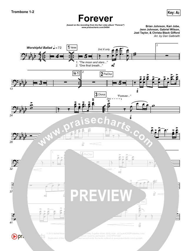 Download the Orchestration brass parts for Forever (Live) by Kari Jobe, from the album Majestic. This song was arranged by Daniel Galbraith in the key of A, Ab, Bb, Eb, F, G.