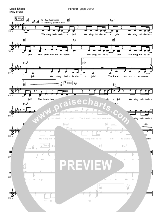 Download the sheet music for Forever (Live) by Kari Jobe, from the album Majestic. This song was arranged by Daniel Galbraith in the key of A, Ab, Bb, Eb, F, G.