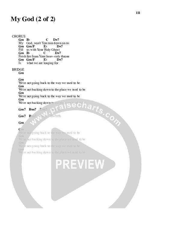 Download the PDF Chord Charts for My God by Bethany Music / Jonathan Stockstill, from the album Bethany Live: Let The Church Rise. This song was arranged by Daniel Galbraith in the key of Fm, Gm.