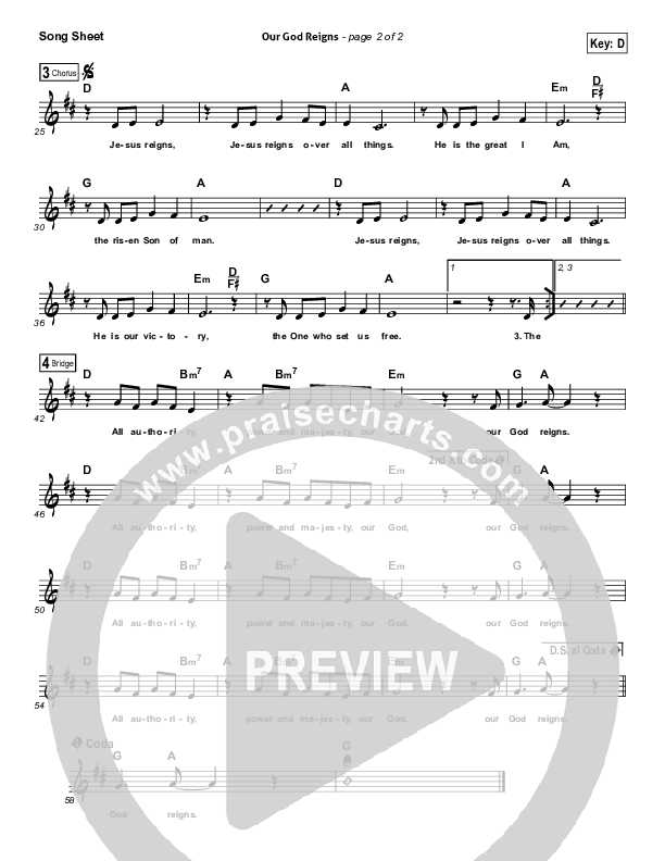 Download the sheet music for Our God Reigns by Planetshakers, from the album Endless Praise.