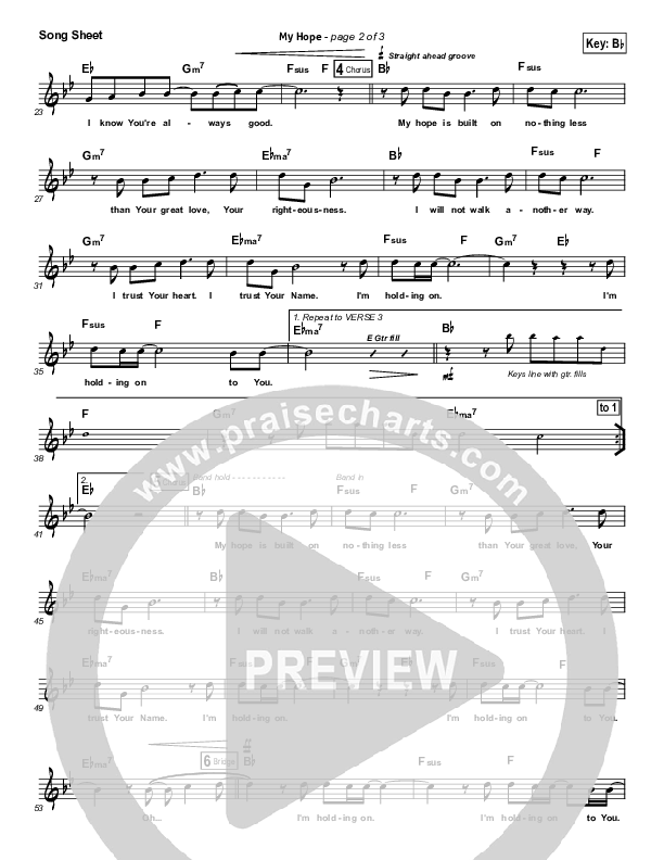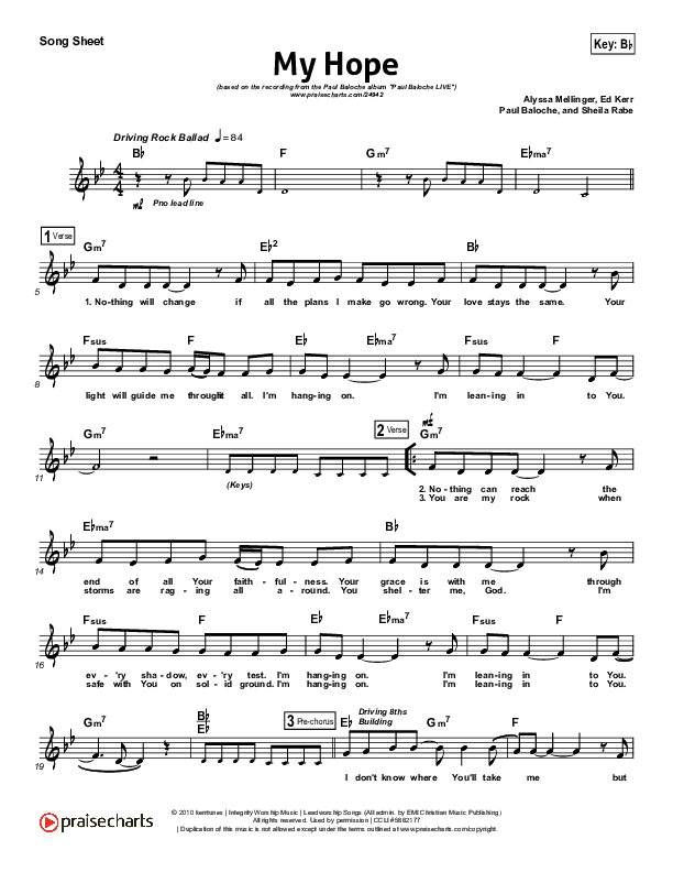 Download the sheet music for My Hope by Paul Baloche, from the album Paul Baloche Live. This song was arranged by Shane Ohlson in the key of A, Bb.