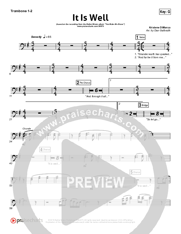 It Is Well Trombone Sheet Music PDF (Kristene DiMarco / Bethel Music)