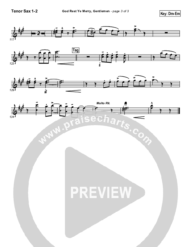 God Rest Ye Merry Gentlemen Tenor Sax Sheet Music PDF (PraiseCharts Band / Arr. Daniel Galbraith)