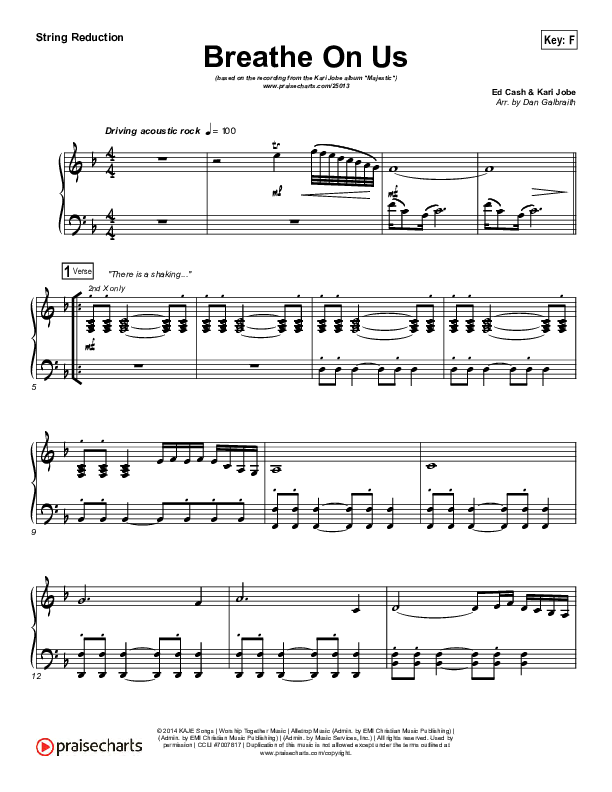 Download the Orchestration for Breathe On Us by Kari Jobe, from the album Majestic. This song was arranged by Daniel Galbraith in the key of F, G, Gb.