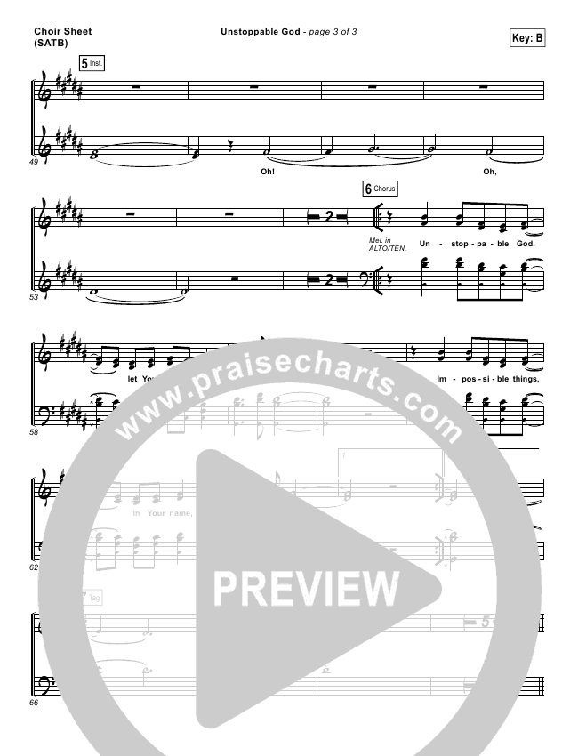 Download the Choir Sheet for Unstoppable God by Elevation Worship, from the album Raised To Life EP. This song was arranged by Daniel Galbraith in the key of B, Bb.