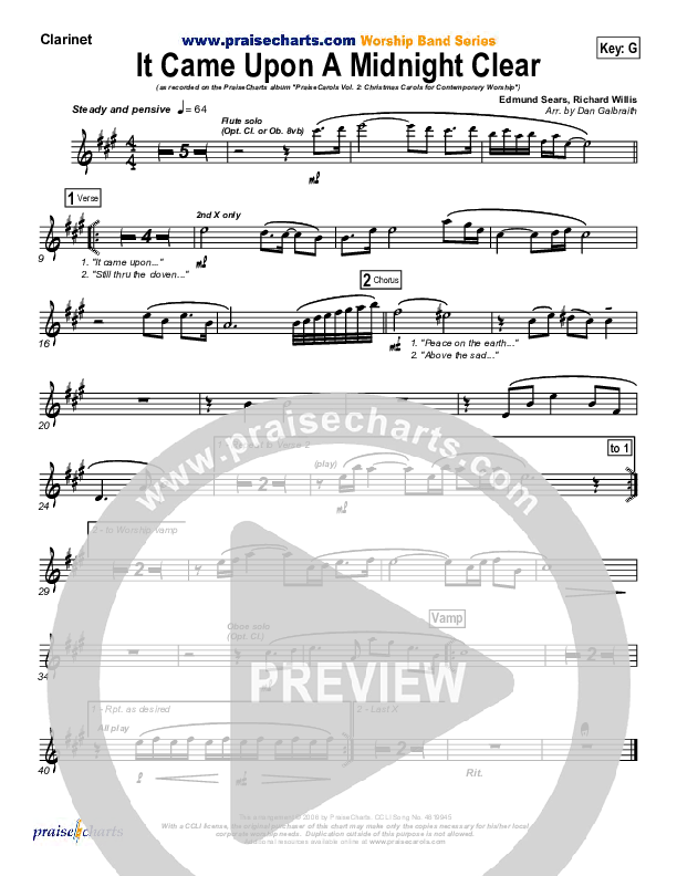 Download the Orchestration for It Came Upon A Midnight Clear by Kari Jobe / PraiseCharts Band / Arr. Daniel Galbraith, from the album PraiseCarols (Vol. 2). This song was arranged by Daniel Galbraith in the key of Ab, G.