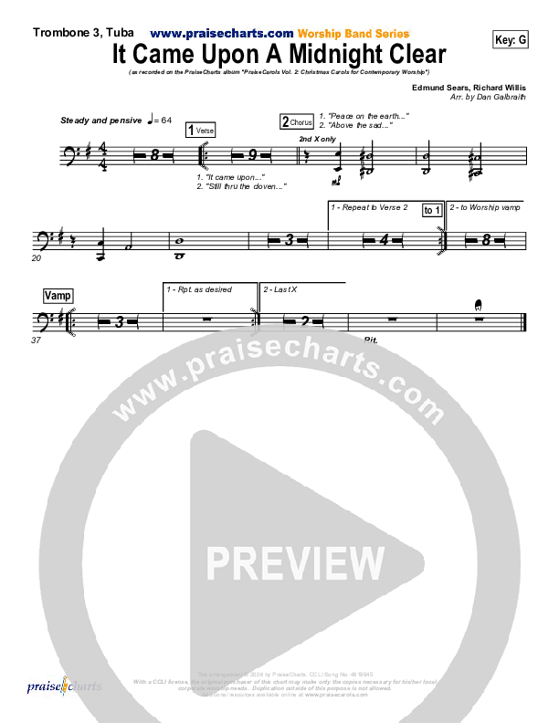 It Came Upon A Midnight Clear Trombone/Tuba Sheet Music PDF (Kari Jobe / PraiseCharts Band / Arr. Daniel Galbraith)