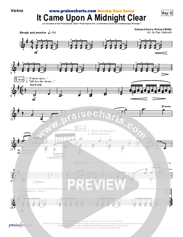 Download the Orchestration for It Came Upon A Midnight Clear by Kari Jobe / PraiseCharts Band / Arr. Daniel Galbraith, from the album PraiseCarols (Vol. 2). This song was arranged by Daniel Galbraith in the key of Ab, G.