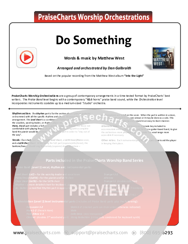 Download the Orchestration for Do Something by Matthew West, from the album Into The Light. This song was arranged by Daniel Galbraith in the key of D, E.