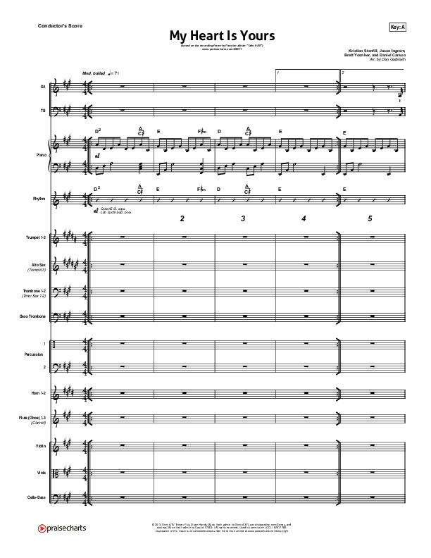 Download the Orchestration for My Heart Is Yours by Kristian Stanfill / Passion, from the album Take It All. This song was arranged by Daniel Galbraith in the key of A, Bb.