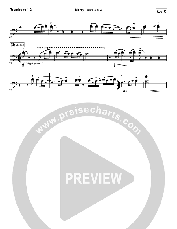 Download the Trombone 1,2 sheet music for Mercy by Matt Redman / Passion, from the album Take It All. This song was arranged by Daniel Galbraith in the key of Bb, C.