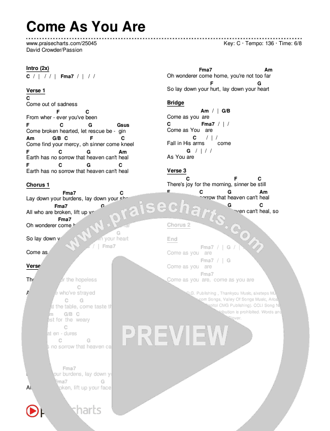 Come As You Are Chords PDF (David Crowder / Passion)