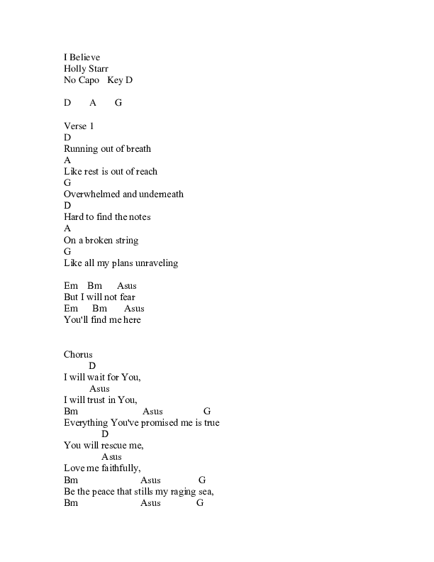 Download the PDF Chord Charts for I Believe by Holly Starr, from the album Focus.