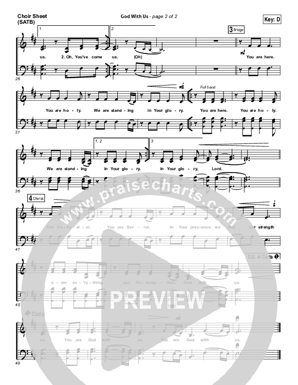 Download the Choir Sheet for God With Us by All Sons & Daughters, from the album All Sons & Daughters. This song was arranged by Daniel Galbraith in the key of C, D, Eb.