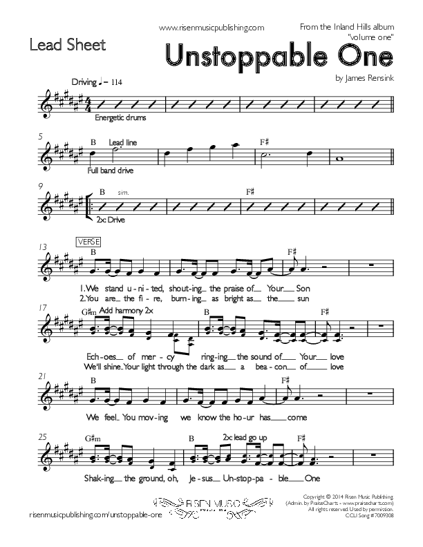 Download the sheet music for Unstoppable One by Inland Hills, from the album Volume One.
