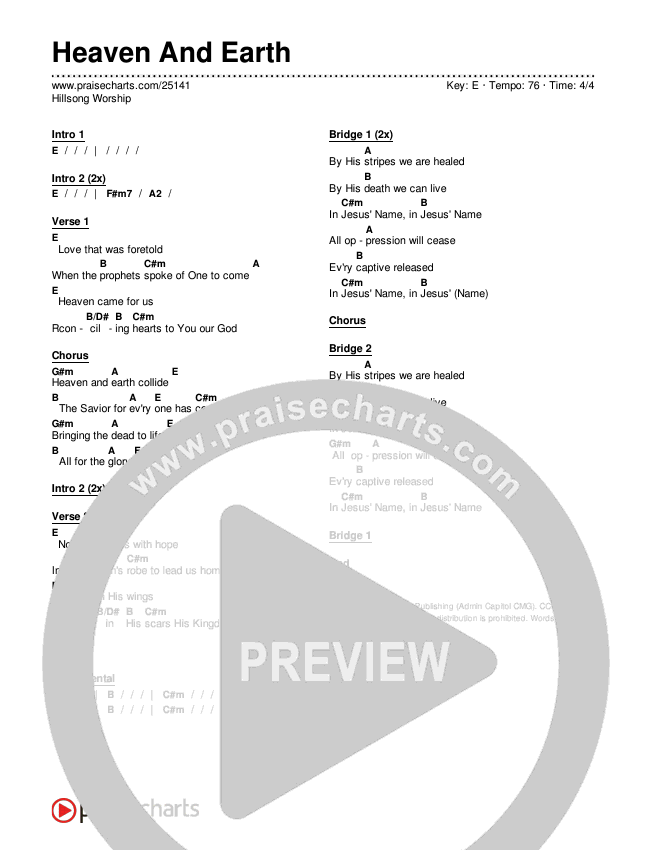 Heaven And Earth Chords PDF (Hillsong Worship)