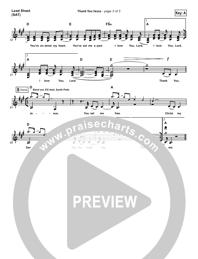 Download the sheet music for Thank You Jesus by Hillsong Worship / Hannah Hobbs, from the album No Other Name. This song was arranged by Daniel Galbraith / John Wasson in the key of A, Bb.