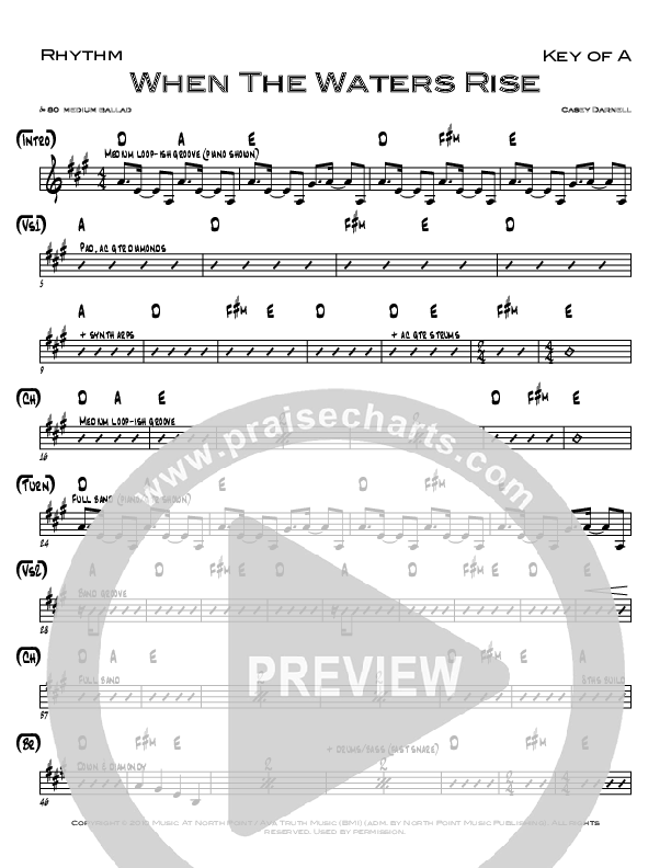 Download the Rhythm Chart for When The Waters Rise by Casey Darnell, from the album Coming Alive.
