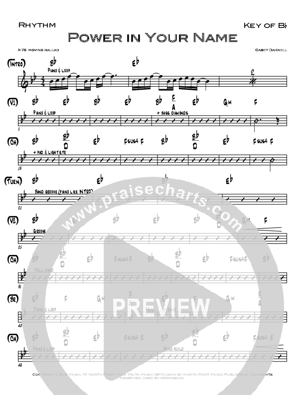 Download the Rhythm Chart for Power In Your Name by Casey Darnell, from the album Coming Alive.
