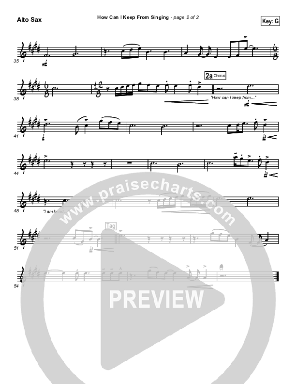 Download the AltoSax sheet music for How Can I Keep From Singing by Chris Tomlin, from the album See The Morning. This song was arranged by Keith Everette Smith in the key of A, Bb, G.