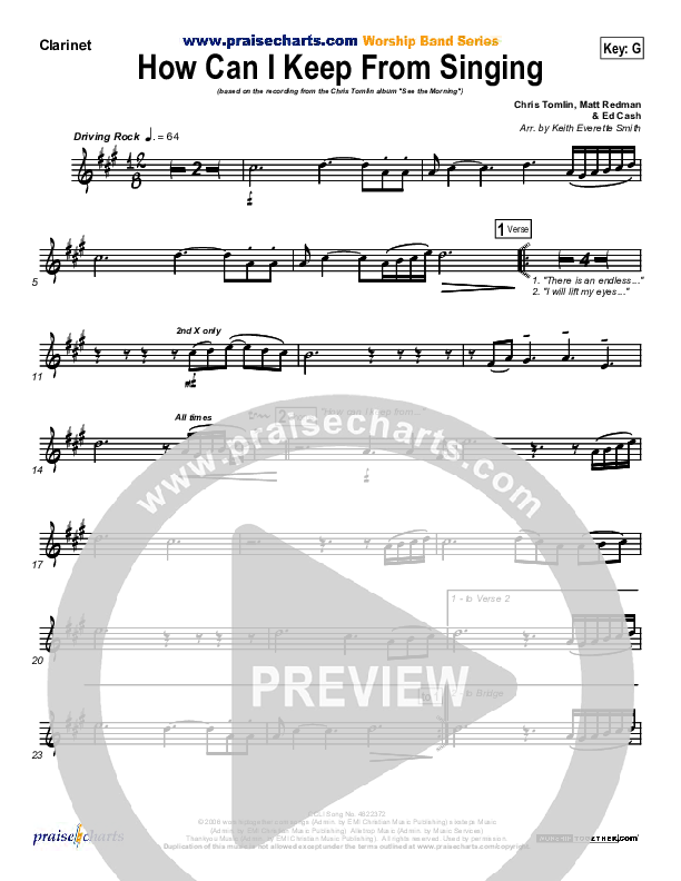 Download the Orchestration for How Can I Keep From Singing by Chris Tomlin, from the album See The Morning. This song was arranged by Keith Everette Smith in the key of A, Bb, G.