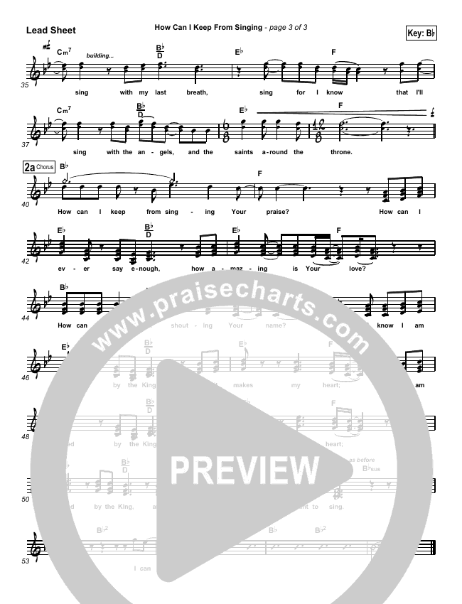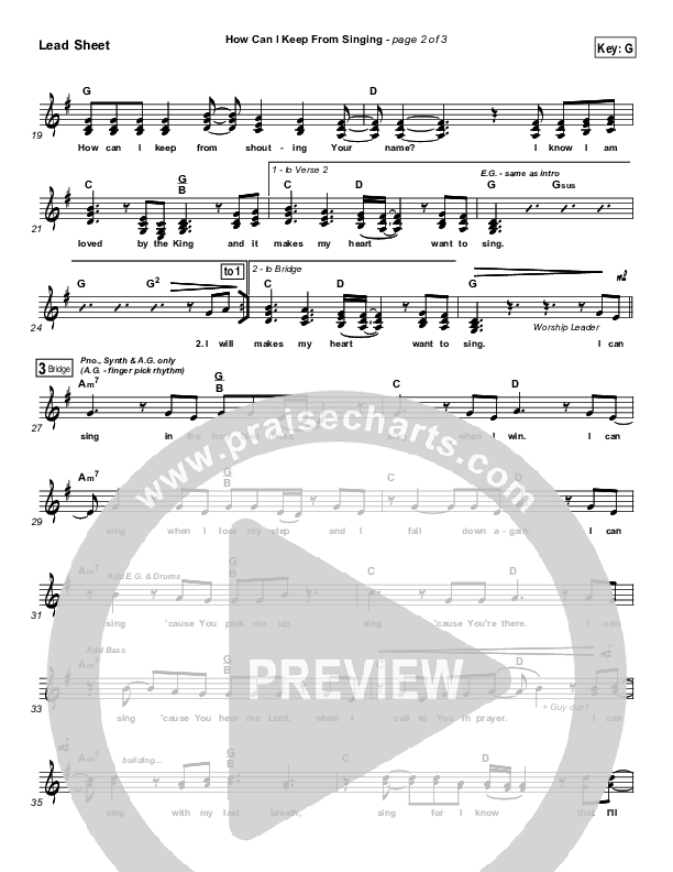 Download the sheet music for How Can I Keep From Singing by Chris Tomlin, from the album See The Morning. This song was arranged by Keith Everette Smith in the key of A, Bb, G.