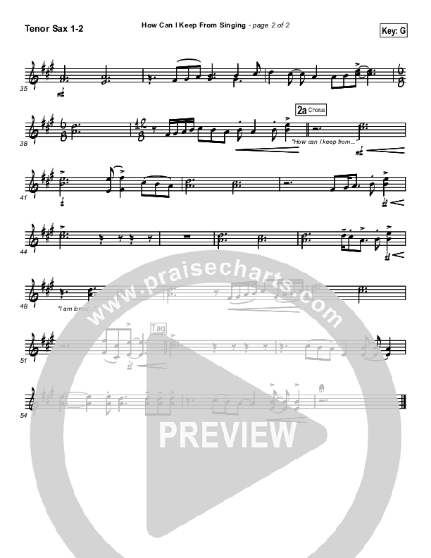 Download the Tenor Sax sheet music for How Can I Keep From Singing by Chris Tomlin, from the album See The Morning. This song was arranged by Keith Everette Smith in the key of A, Bb, G.