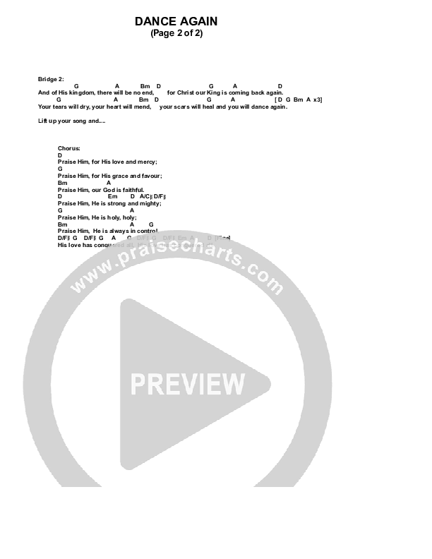Dance Again Chords PDF (Life Worship)