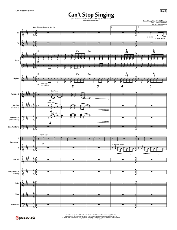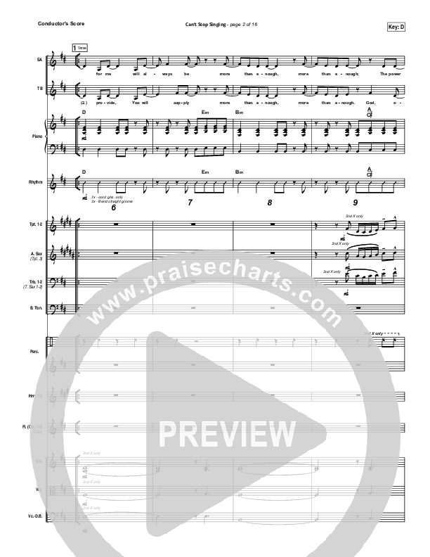 Download the Orchestration for Can't Stop Singing by Covenant Worship / Nicole Binion / Joshua Dufrene / Israel Houghton, from the album Kingdom. This song was arranged by Daniel Galbraith in the key of C, D.