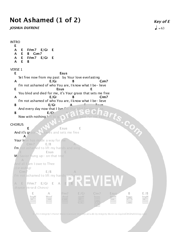 Not Ashamed Chords PDF (Covenant Worship / Joshua Dufrene)